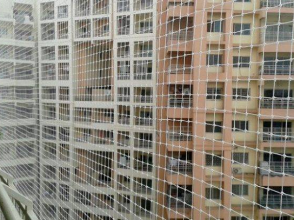 High-strength pigeon nets to block entry and nesting in balconies and windows.